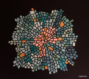 Papirmosaik og maleri af Tina Brandt Jespersen