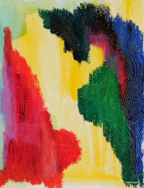 Papirmosaik og maleri af Tina Brandt Jespersen