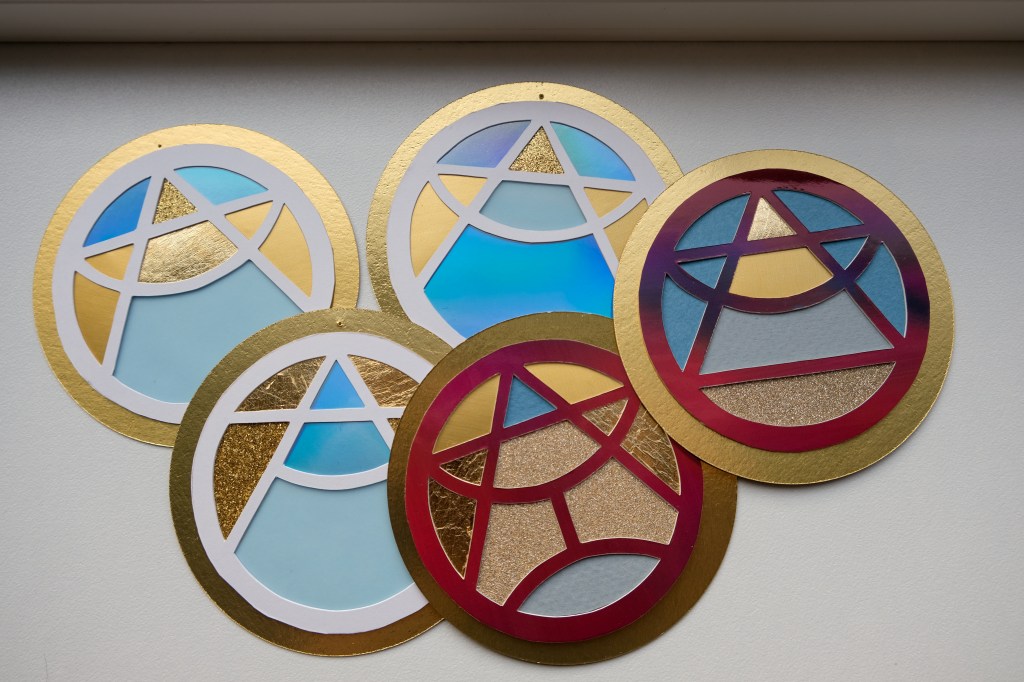 De små geometriske ophæng er konstrueret ud fra cirkler og en hexagon
