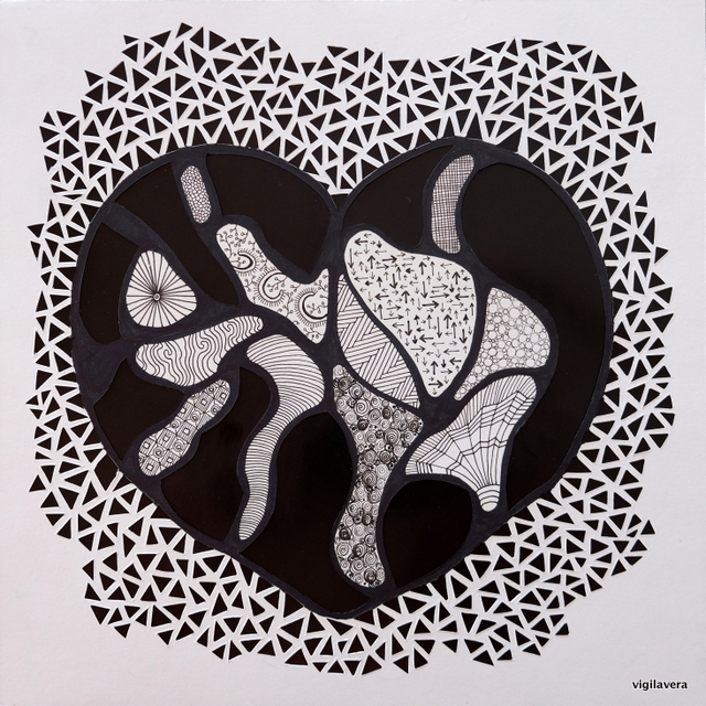 Papirmosaik og maleri af Tina Brandt Jespersen