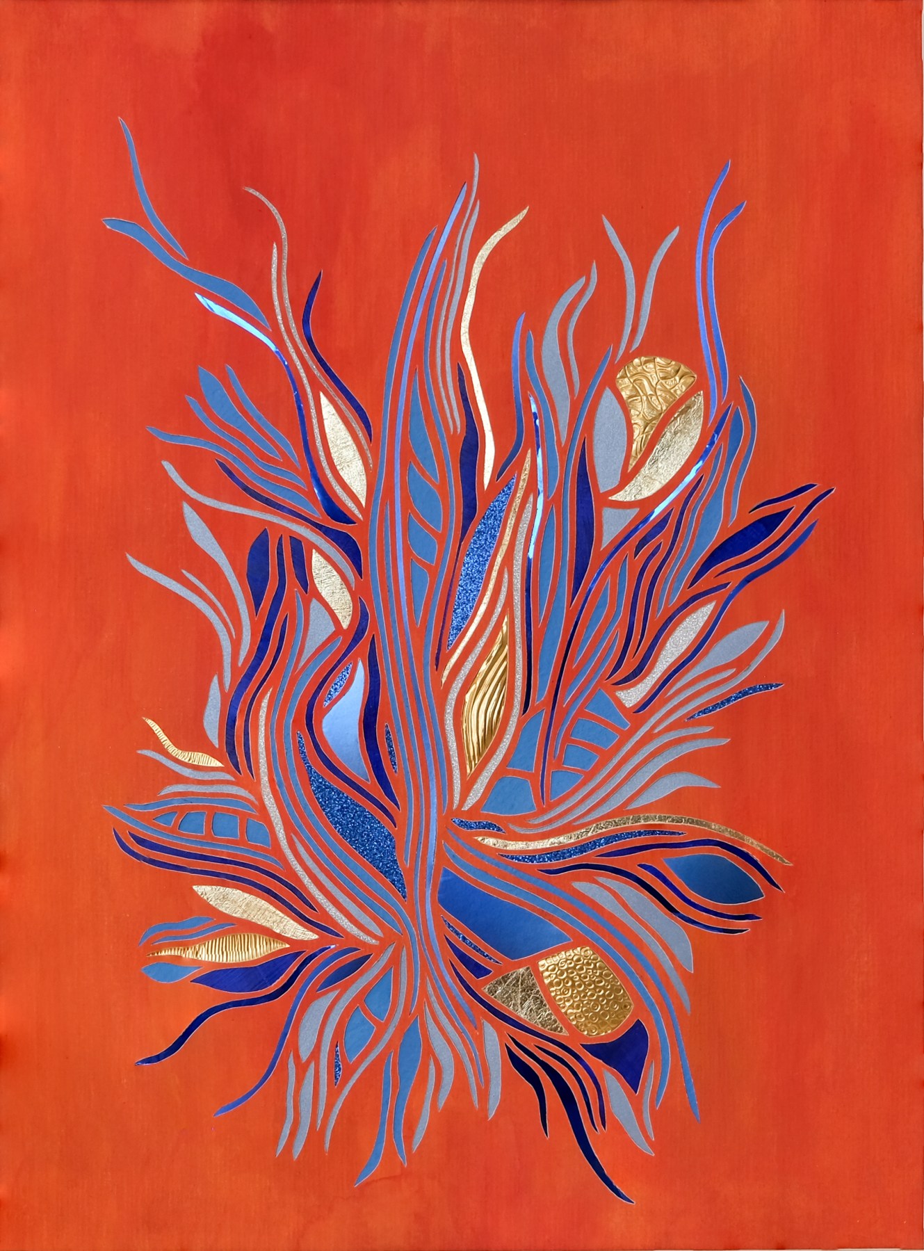 Papirmosaik og maleri af Tina Brandt Jespersen